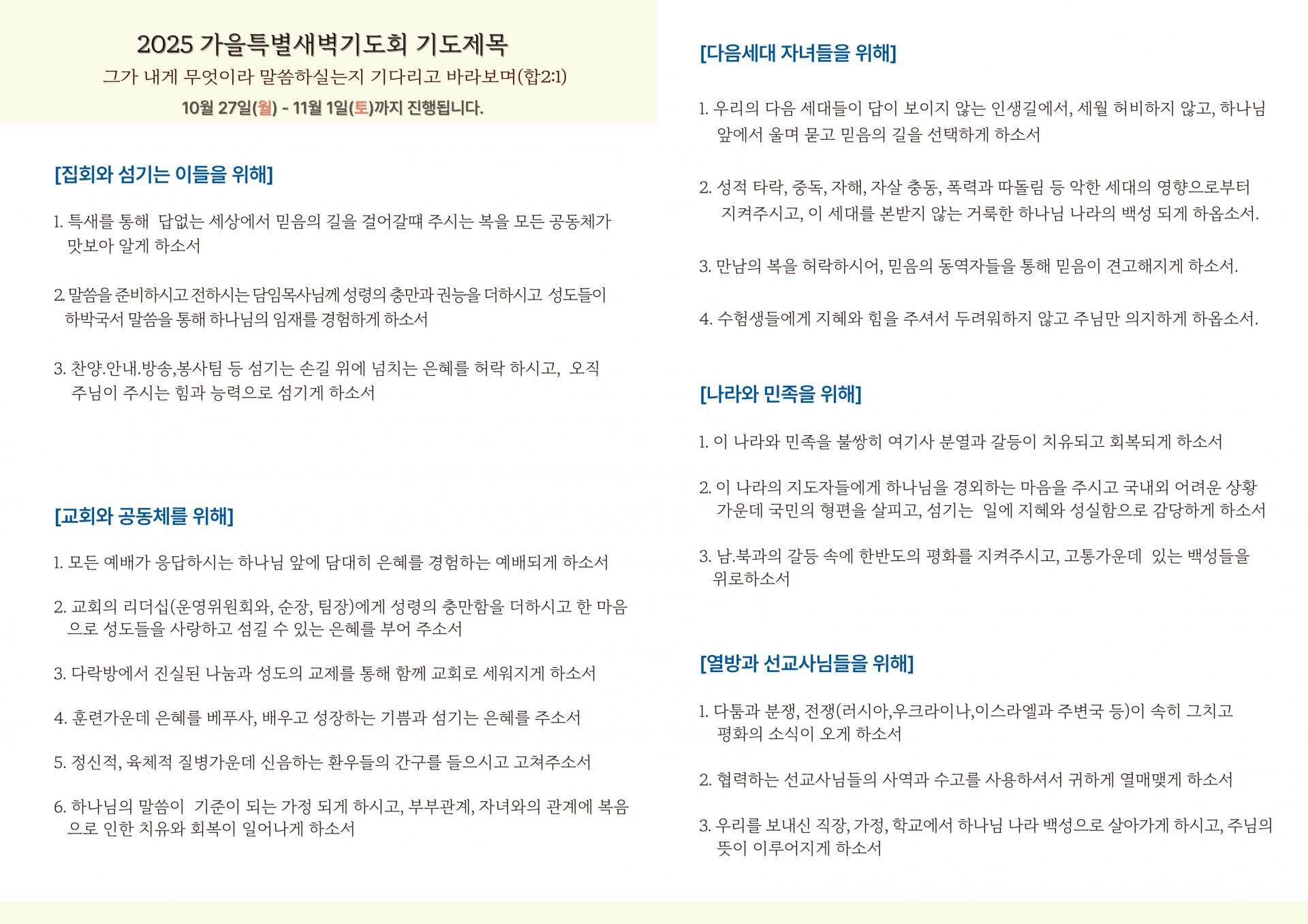 2025 가을특별새벽기도회